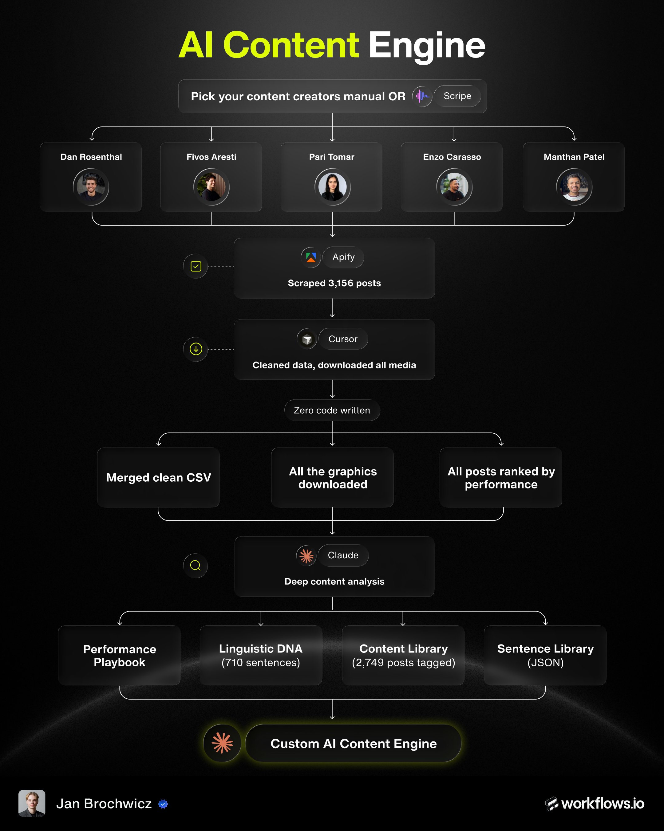 Build a niche-specific AI content engine trained on thousands of real high-performing posts to generate data-backed, non-generic content.